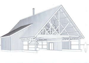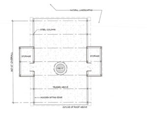 This pavilion was designed for summer picnics and receptions, then to be flooded for ice skating in the winter. A metal roof atop trusses of steel, wood, and cable evoked the locomotive stations and industrial sheds of old. Unfortunately, this design was never built.