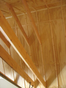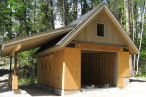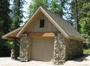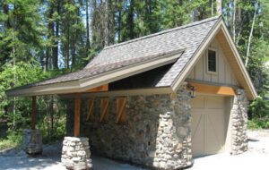 We kept the size small but the presence large, with stone and timber detailing. The interior features finished plywood paneling and exposed rafter ties.